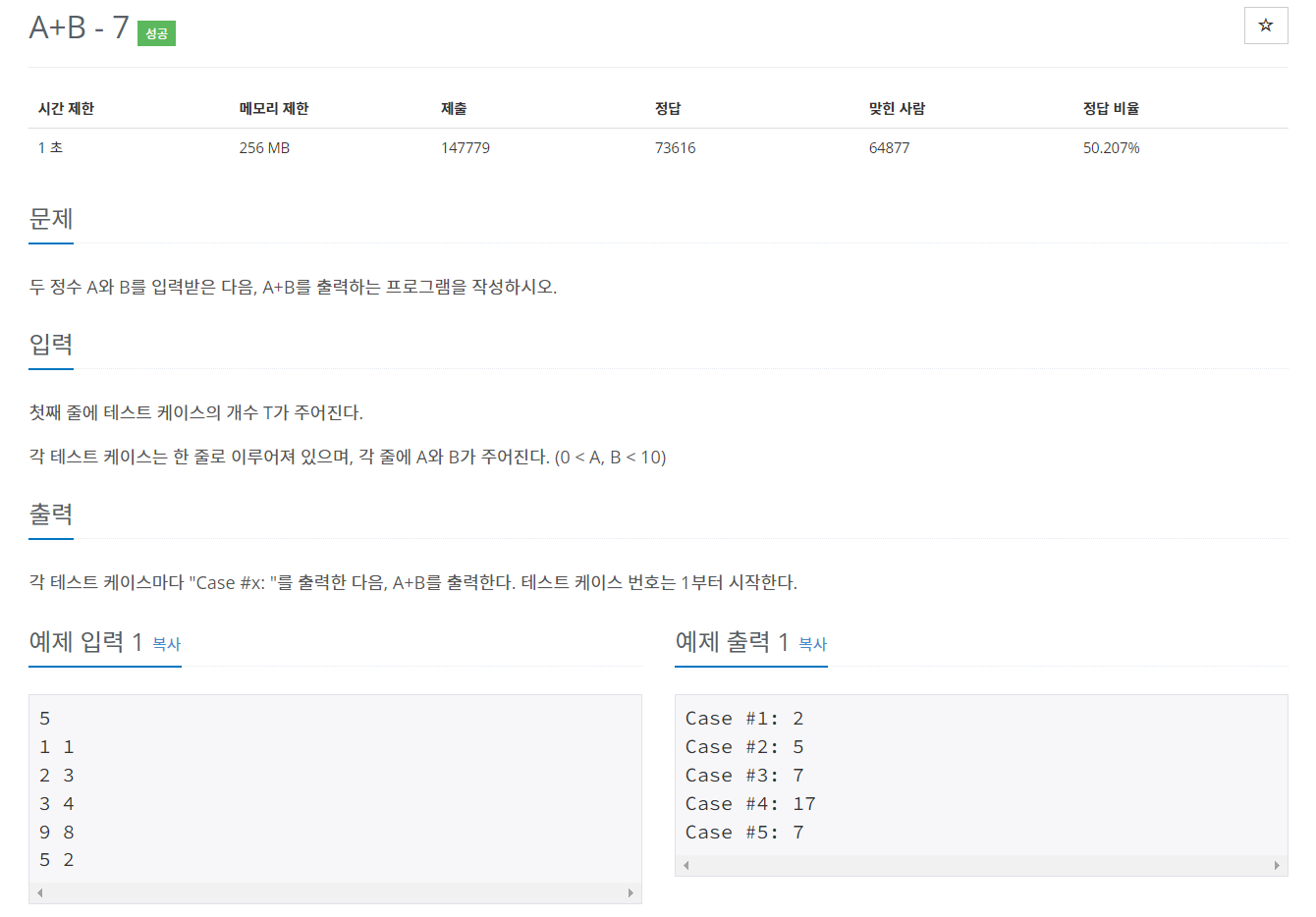 [Python] 백준 11021번(A+B - 7) 문제 풀이 본문