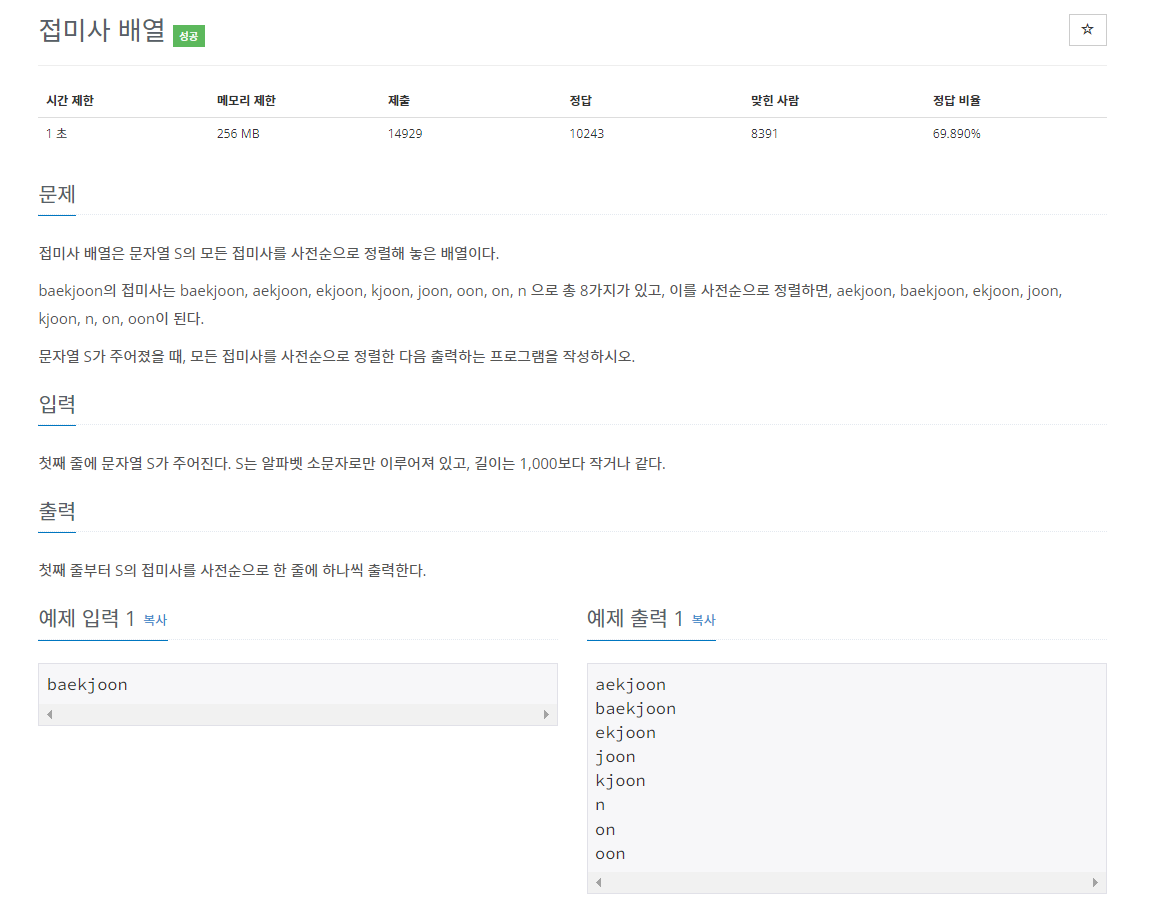 [Python] 백준 11656번(접미사 배열) 문제 풀이 본문