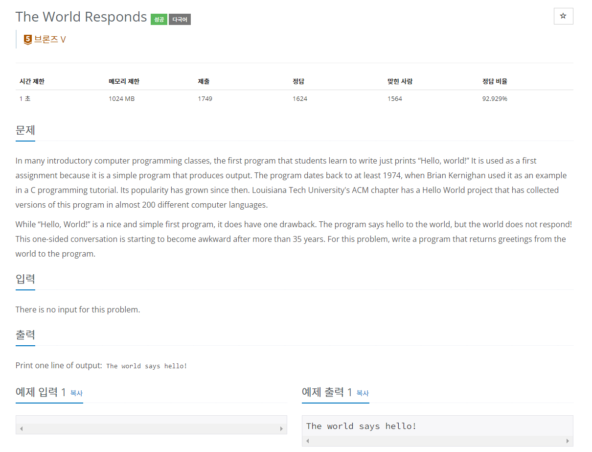 [Text] 백준 23234번(The world says hello!) 문제 풀이 본문