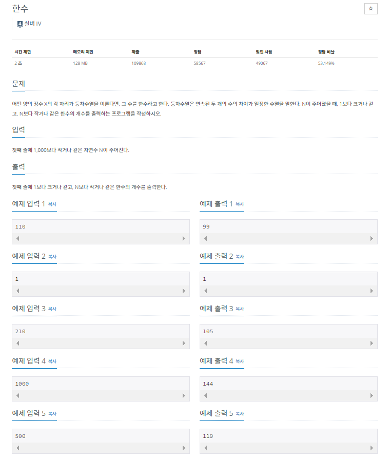 [Python] 백준 1065번(한수) 문제 풀이 본문