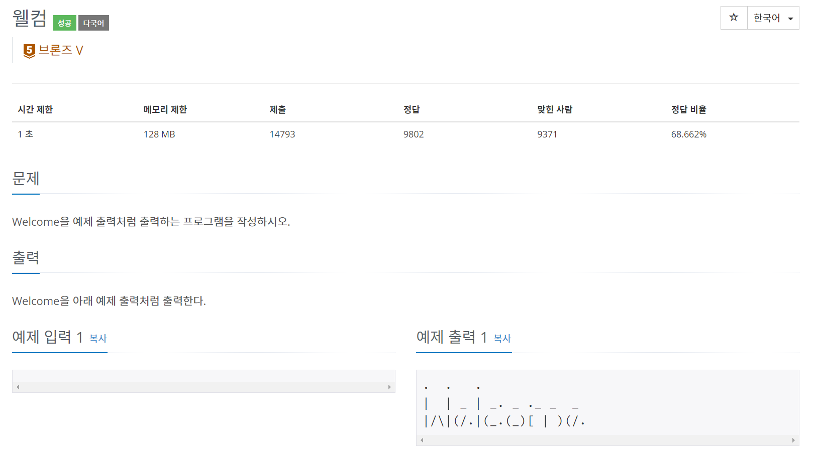 [Text] 백준 5337번(웰컴) 문제 풀이 본문