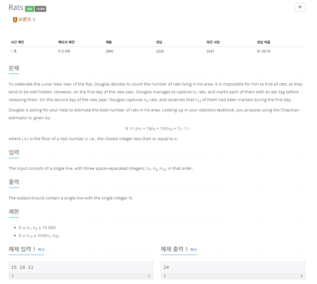 [Python] 백준 18301번(Rats) 문제 풀이 본문