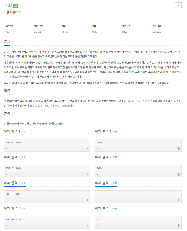 [Python] 백준 10156번(과자) 문제 풀이 본문