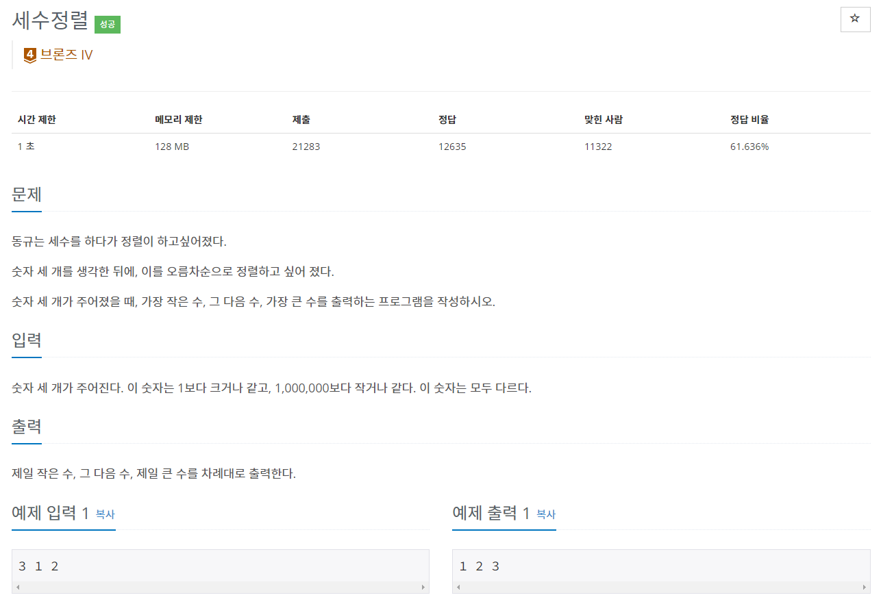 [Python] 백준 2752번(세수정렬) 문제 풀이 본문
