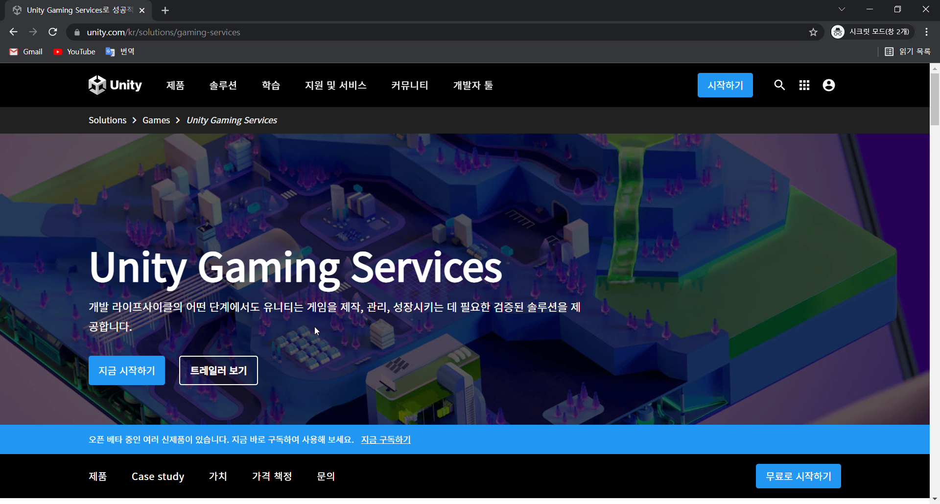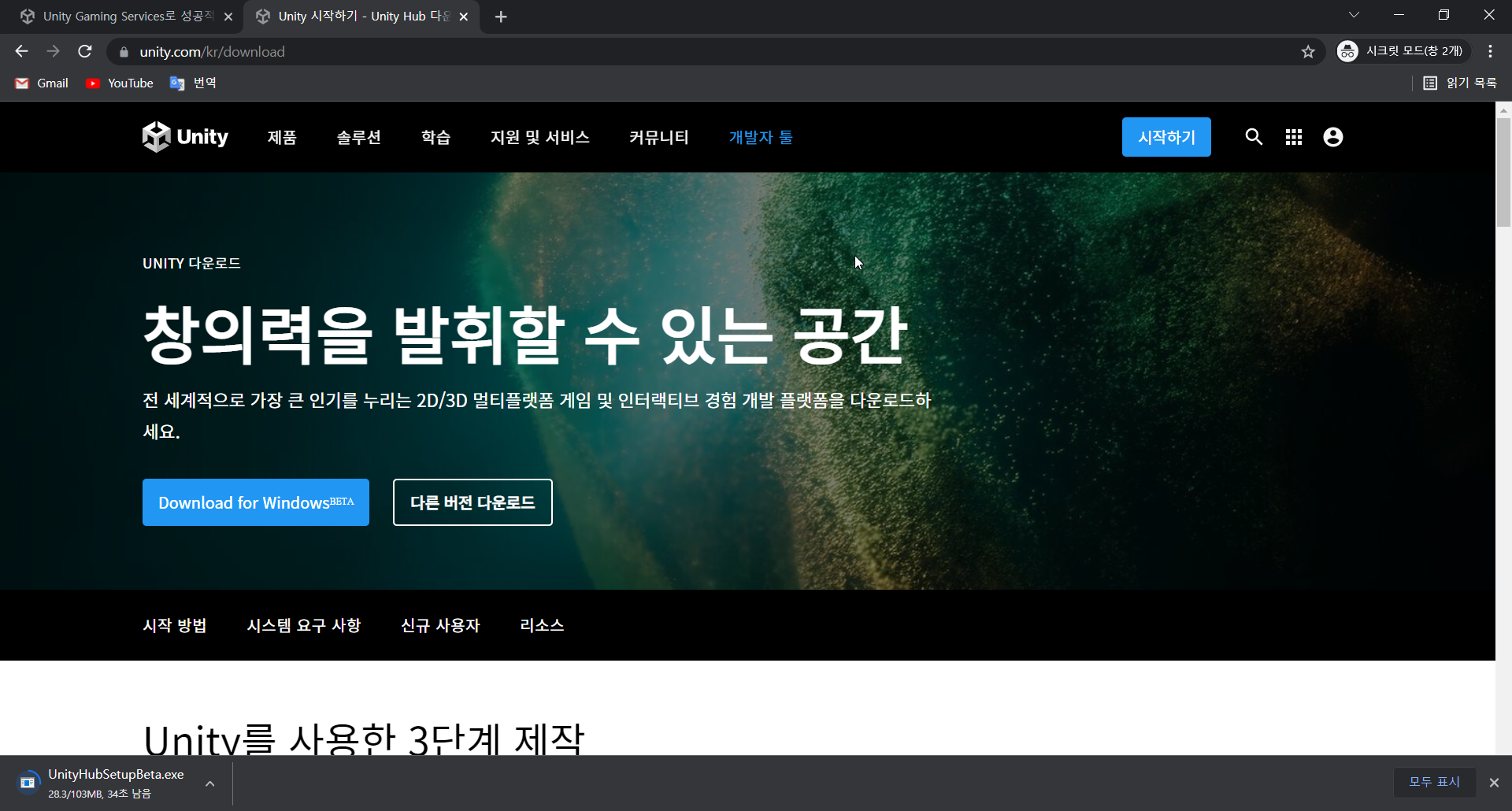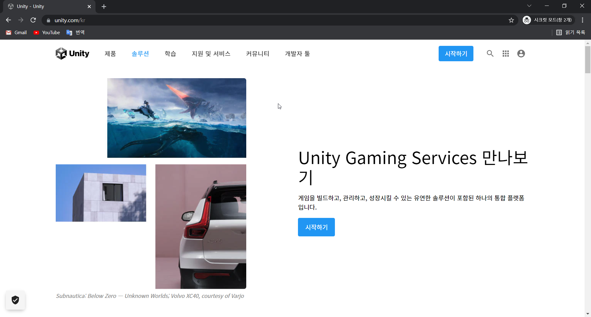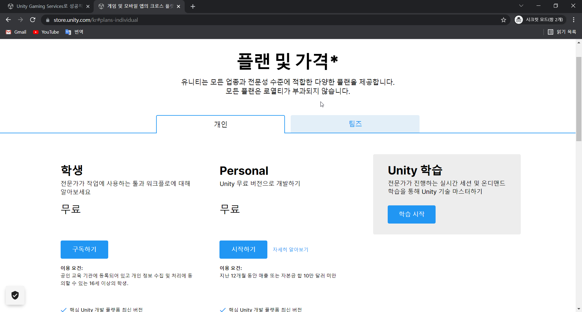 우선 이 유니티 사이트에 들어갑시다. (사진을 클릭하면 이동됩니다.)