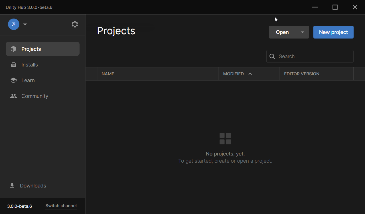 Unity Hub의 <Projects> 탭으로 가 줍시다.