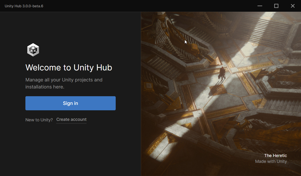 워우... 저 같은 경우에는 이미 유니티 계정이 있기에 <Sign in> 버튼을 클릭해서 로그인해주었고, 처음이신 분들은 <Create account>를 클릭 후 가입하시면 됩니다.