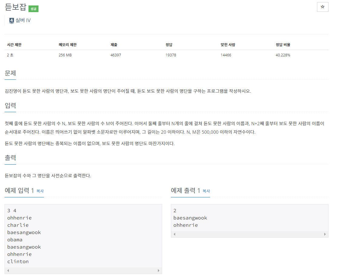 [Python] 백준 1763번(듣보잡) 문제 풀이 본문