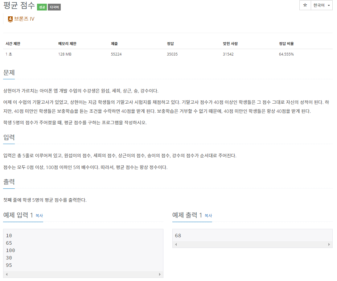 [Python] 10039번(평균 점수) 문제 풀이 본문