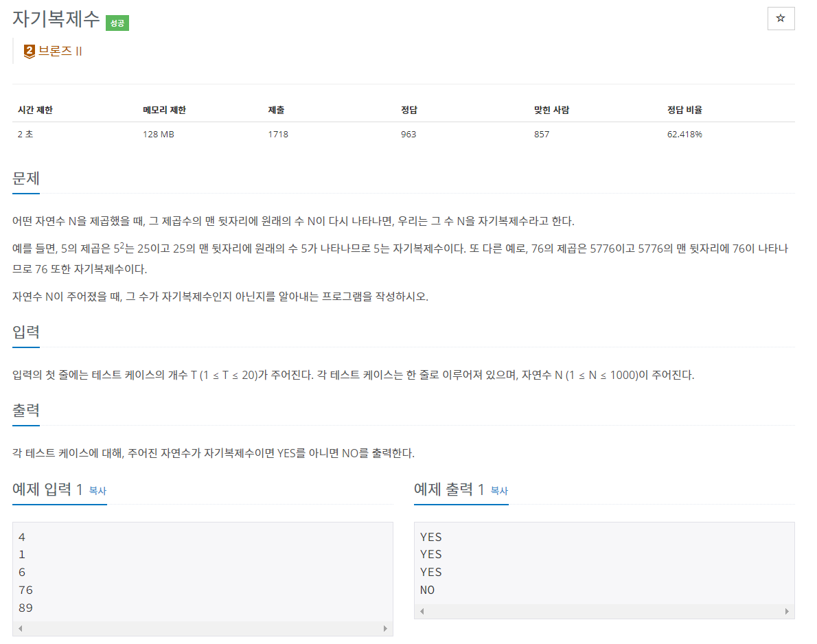 [Python] 백준 2028번(자기복제수) 문제 풀이 본문