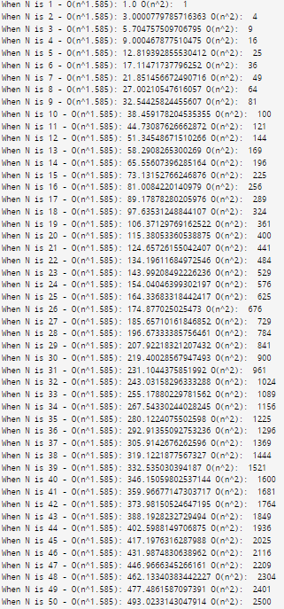 print("When N is", n, "- O(n^1.585):", n**1.585, "O(n^2): ", n**2)