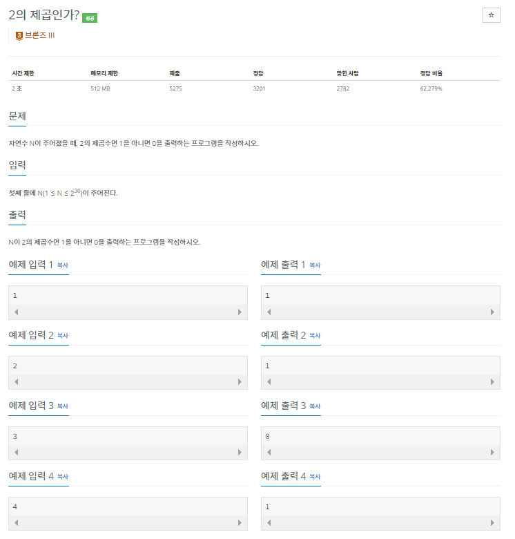 [Python] 백준 11966번(2의 제곱인가?) 문제 풀이 본문