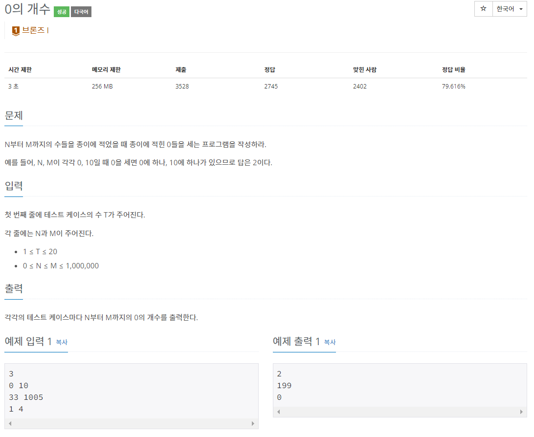 [Python] 백준 11170번(0의 개수) 문제 풀이 본문