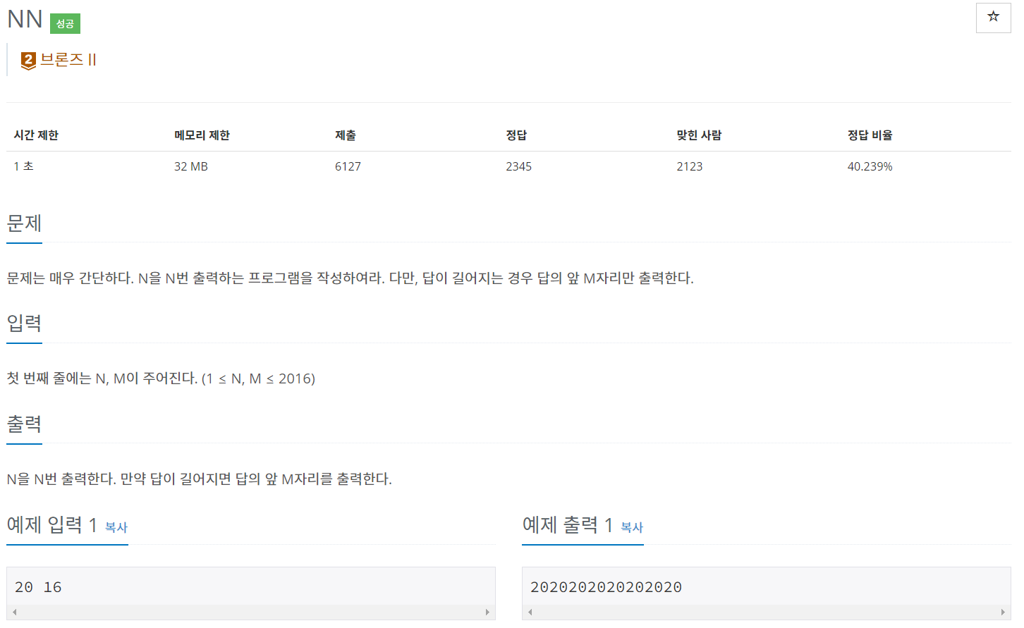 [Python] 백준 11944번(NN) 문제 풀이 본문