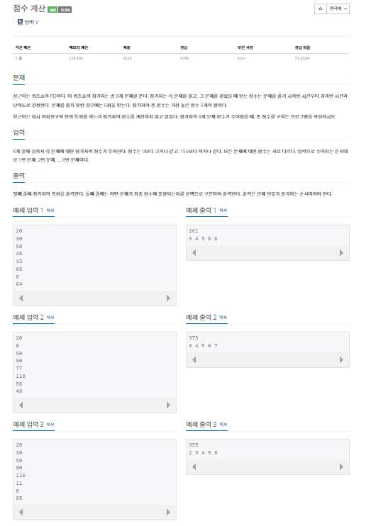 [Python] 백준 2822번(점수 계산) 문제 풀이 본문