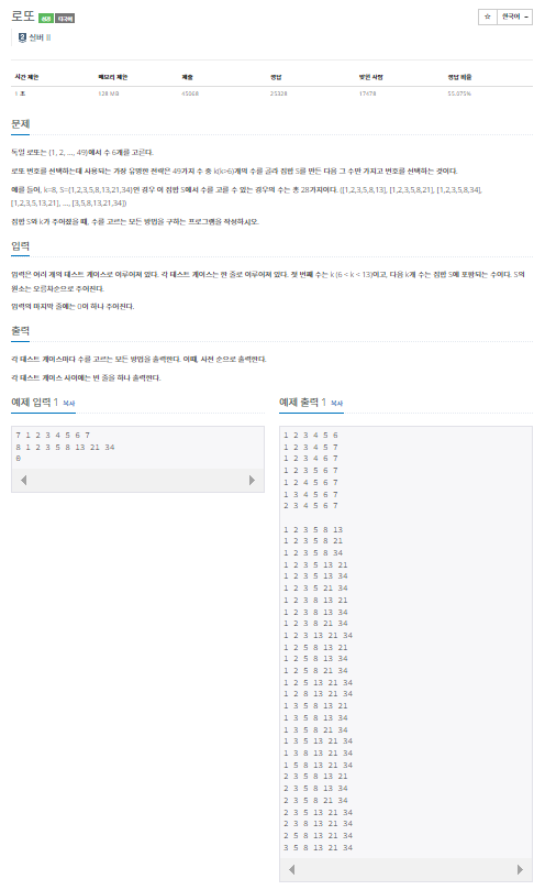 [Python] 백준 6603번(로또) 문제 풀이 본문