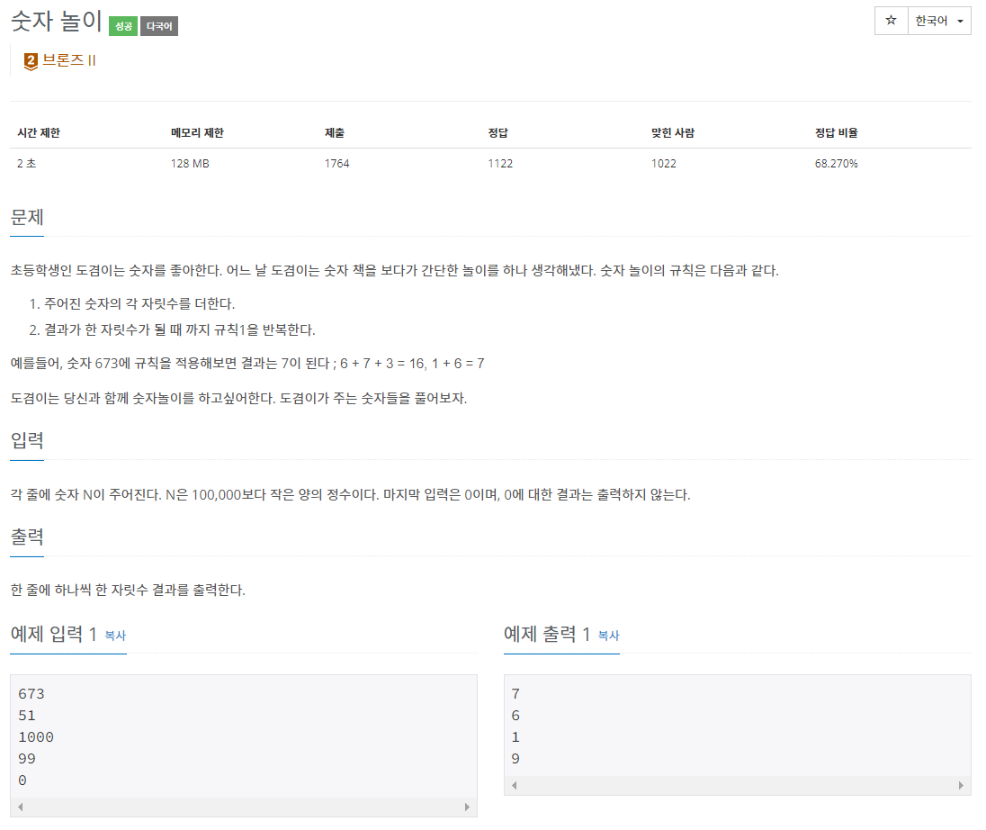 [Python] 백준 2145번(숫자 놀이) 문제 풀이 본문