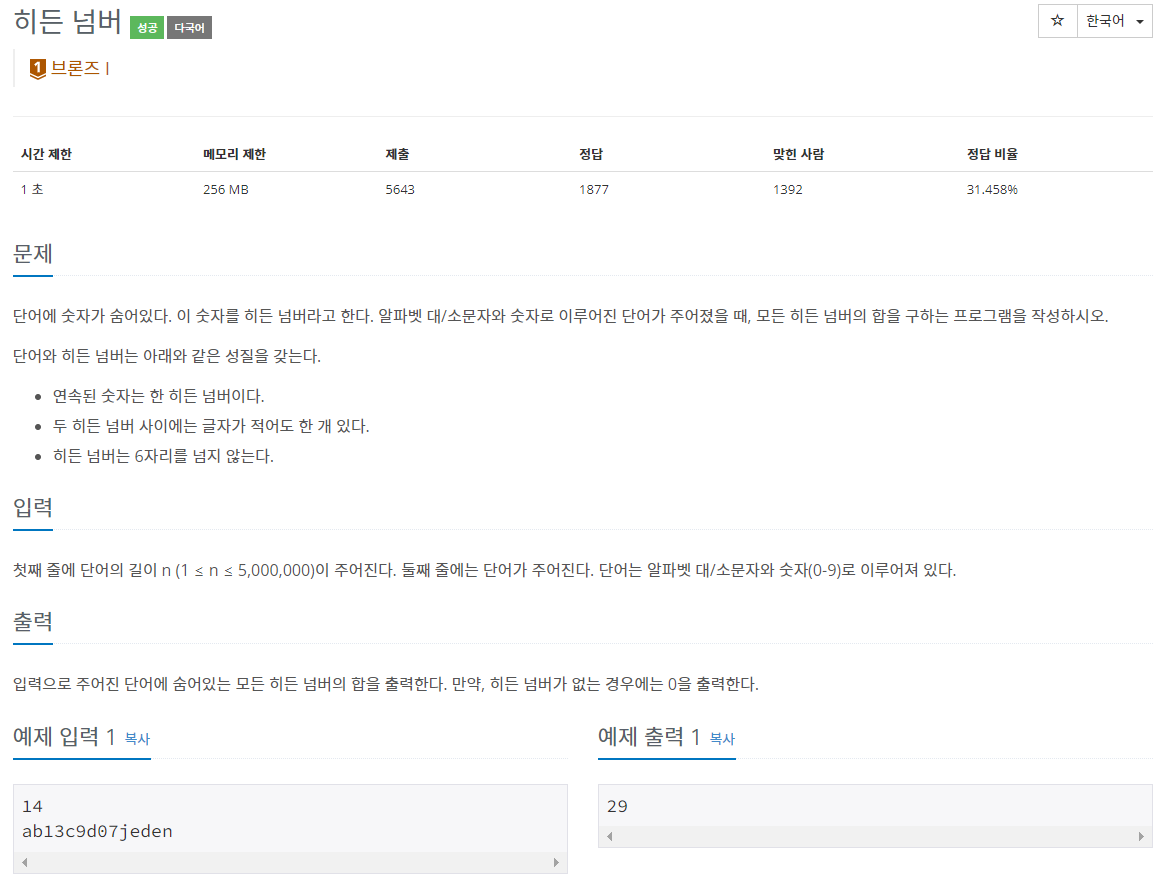 13번 줄의 조건문을 안 썼다가 틀렸습니다가 떴다. 단어가 숫자로 끝난 경우에도 히든 넘버에 포함되기에 13번 14번 줄은 꼭 필요하다.