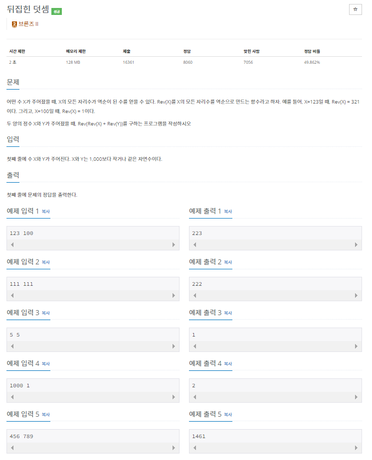 [Python] 백준 1357번(뒤집힌 덧셈) 문제 풀이 본문