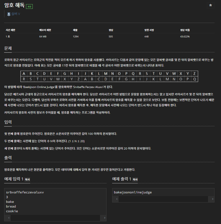 [Python] 백준 14584번(암호 해독) 문제 풀이 본문