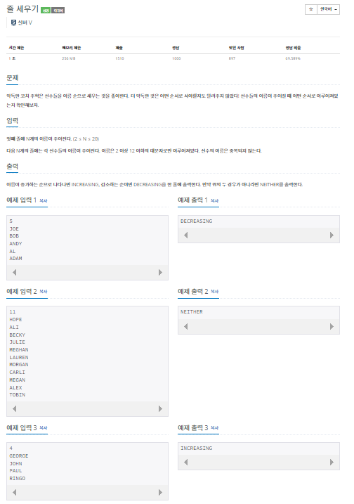 [Python] 백준 11536번(줄 세우기) 문제 풀이 본문