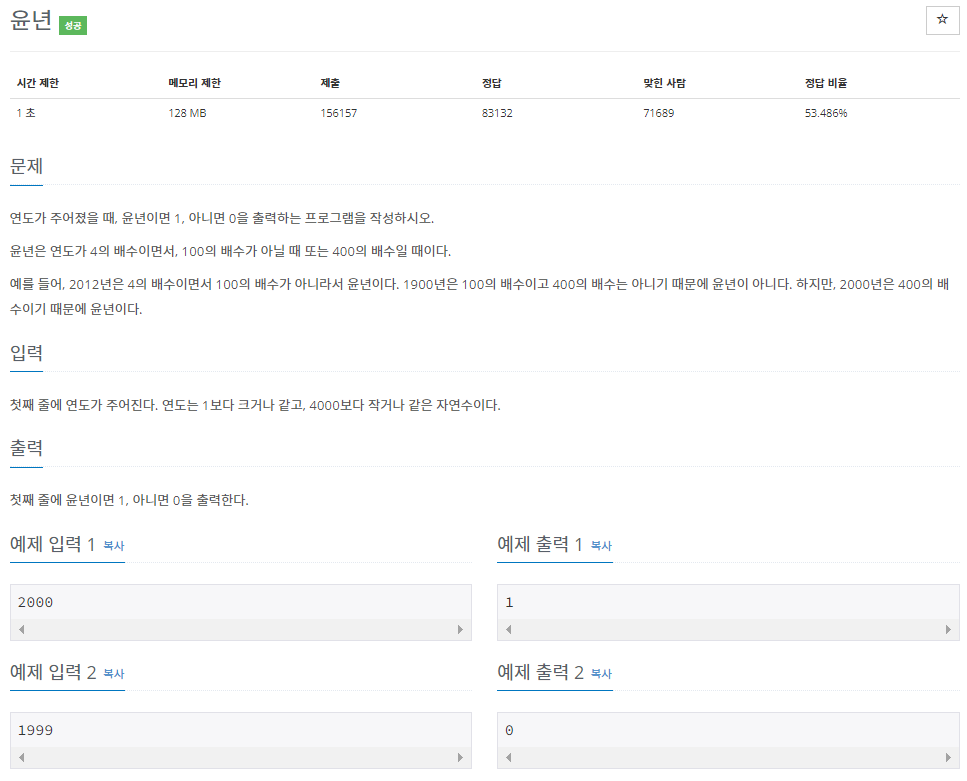 윤년이면 1, 아니면 0을 출력하라는 문제이다.