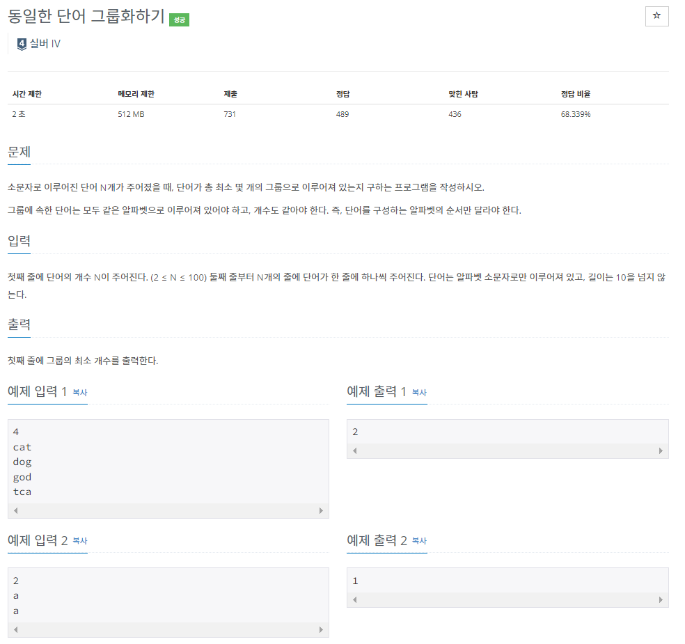 [Python] 백준 16499번(동일한 단어 그룹화하기) 문제 풀이 본문