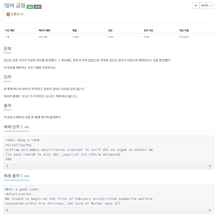 [Python] 백준 11365번(!밀비 급일) 문제 풀이 본문