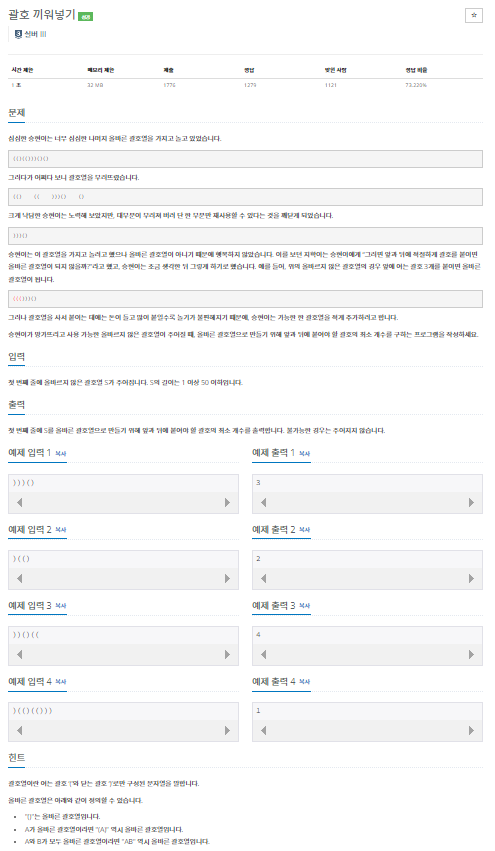 [Python] 백준 11899번(괄호 끼워넣기) 문제 풀이 본문
