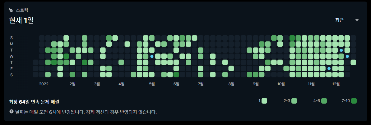 이제 다시 시작해봐야겠다... 물론 스트릭을 시작하는 건 아니고 백준풀이를 좀 해야겠다는거다. 신년 목표 중 백준 골드2 찍기가 있다.