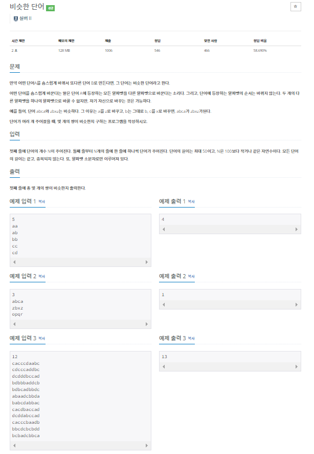 [Python] 백준 1411번(비슷한 단어) 문제 풀이 본문