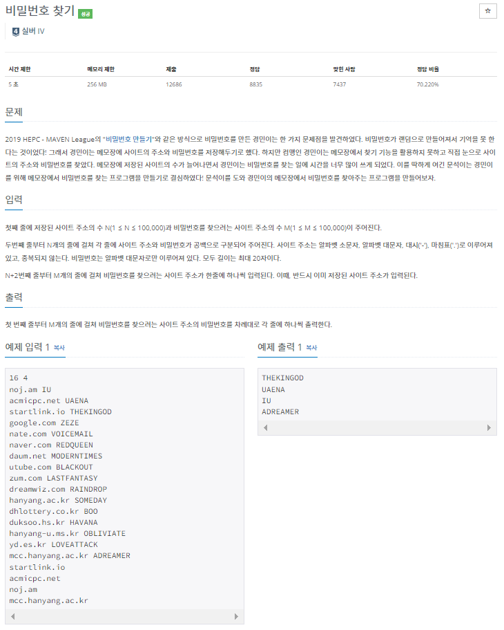 [Python] 백준 17219번(비밀번호 찾기) 문제 풀이 본문