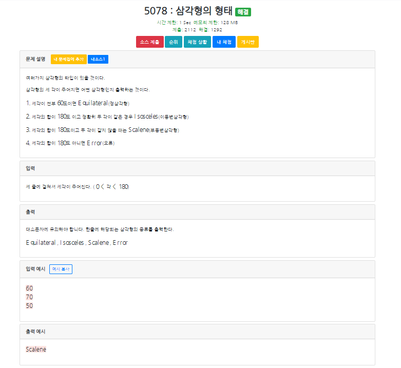 [Python] 코드업 5078번(삼각형의 형태) 문제 풀이 본문
