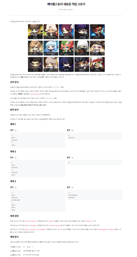 [Python] NYPC 2023 Round 1 <메이플스토리 새로운 직업 고르기> 풀이 본문