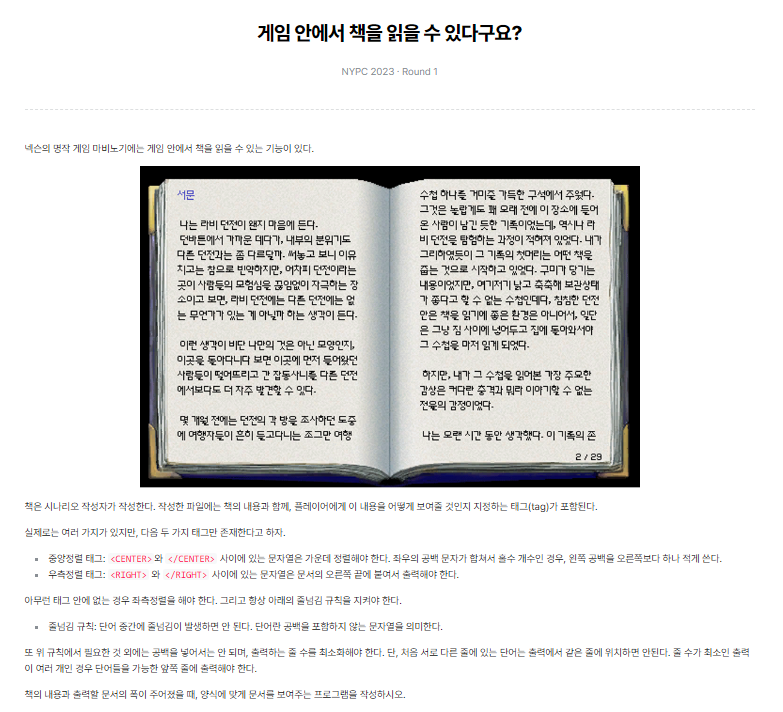 [Python] NYPC 2023 Round 1 <게임 안에서 책을 읽을 수 있다구요?> 문제 풀이 본문