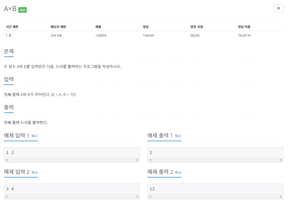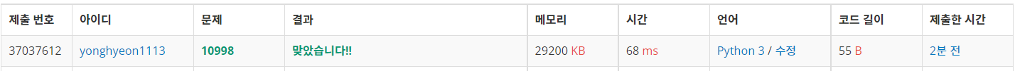 [Python] 백준 10998번(A×B) 문제 풀이 본문