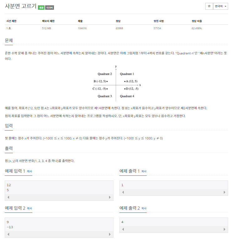 [Python] 14681번(사분면 고르기) 문제 풀이 본문