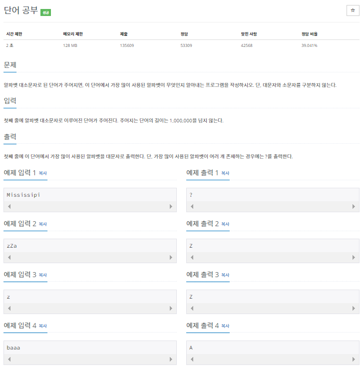 [Python] 백준 1157번(단어 공부) 문제 풀이 본문