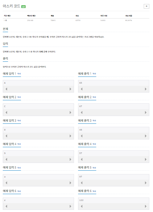 [Python] 백준 11654번(아스키 코드) 문제 풀이 본문