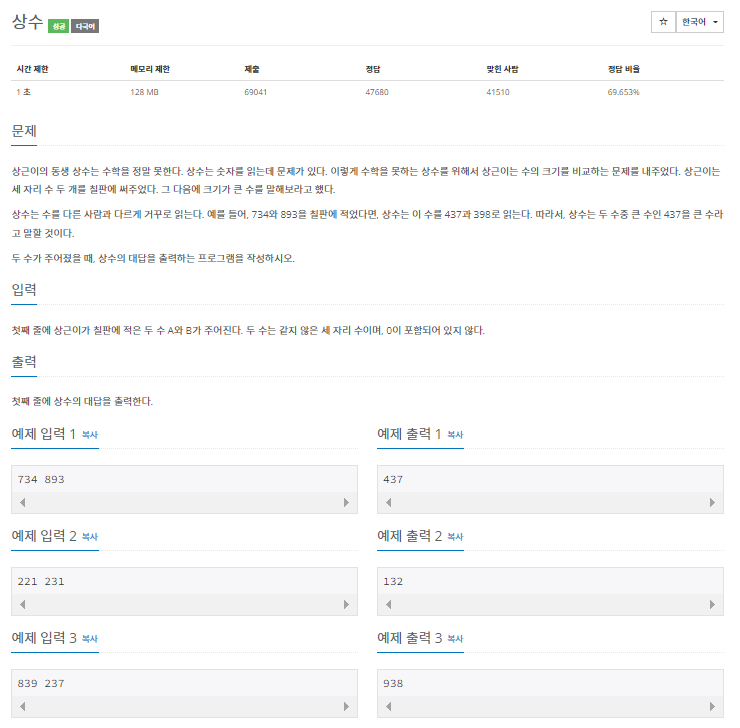 [Python] 백준 2908번(상수) 문제 풀이 본문