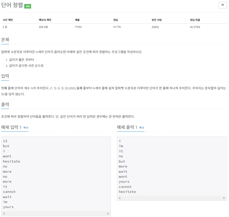 [Python] 백준 1181번(단어 정렬) 문제 풀이 본문