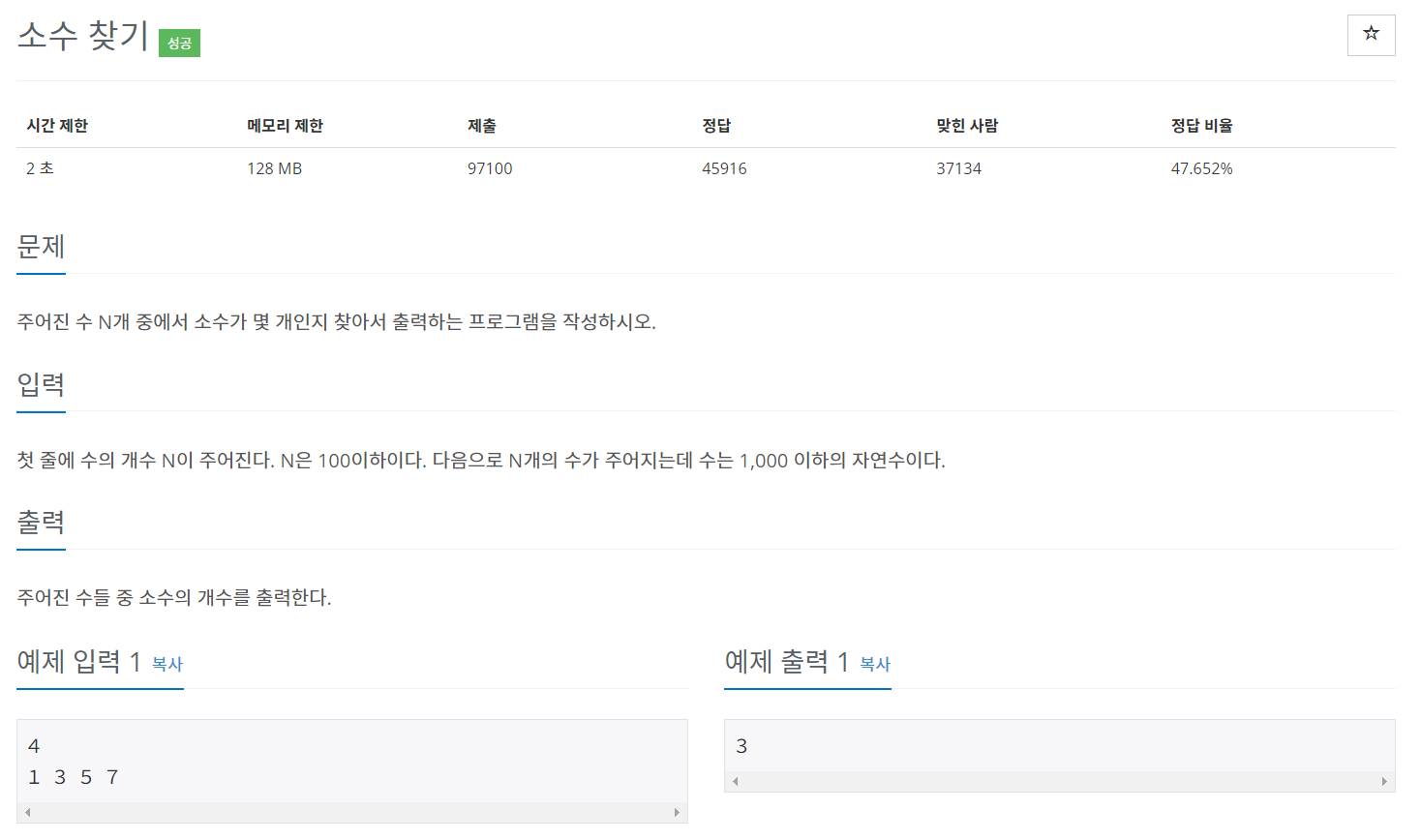 [Python] 백준 1978번(소수 찾기) 문제 풀이 본문