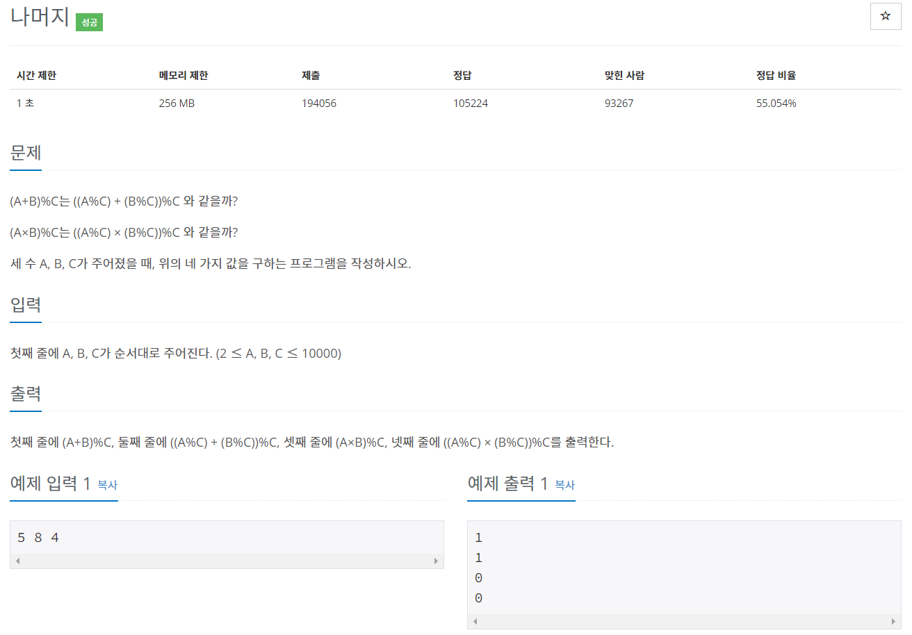 [Python] 백준 10430번(나머지) 문제 풀이 본문