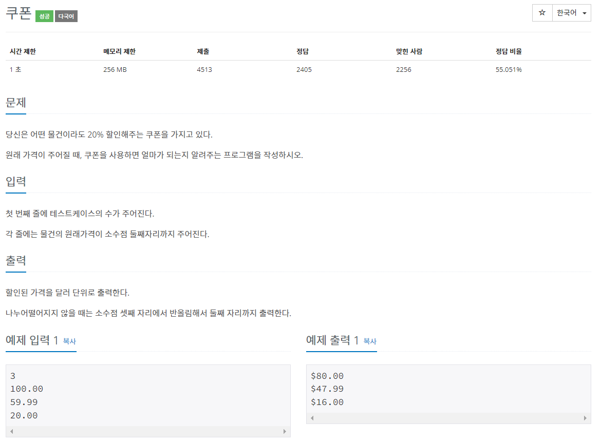 [Python] 백준 10179번(쿠폰) 문제 풀이 본문